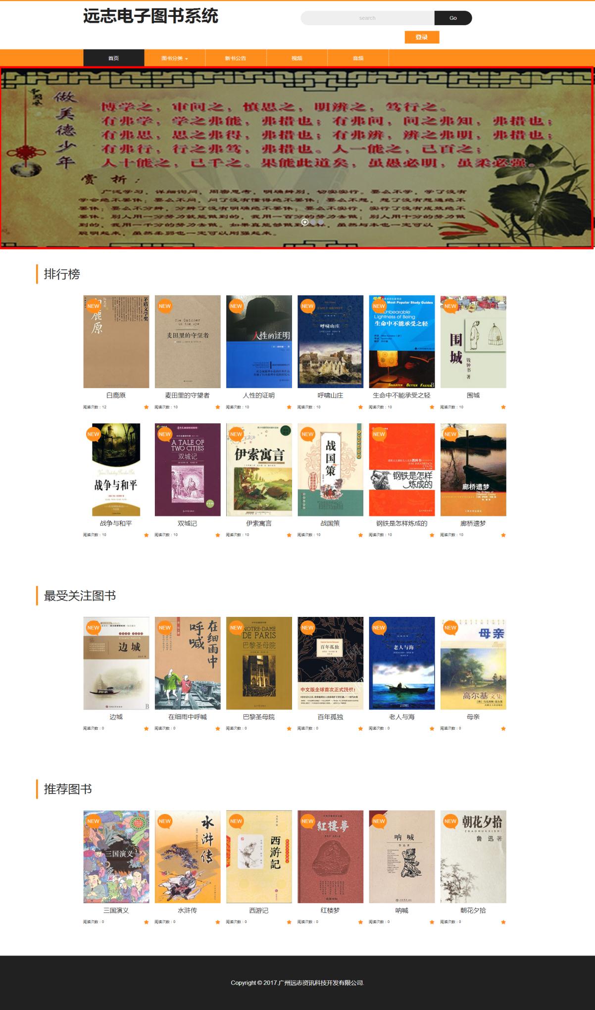 1、读者首页:读者浏览图书馆信息首页,在首页里面布满了各种书籍和受欢迎图书等的信息。